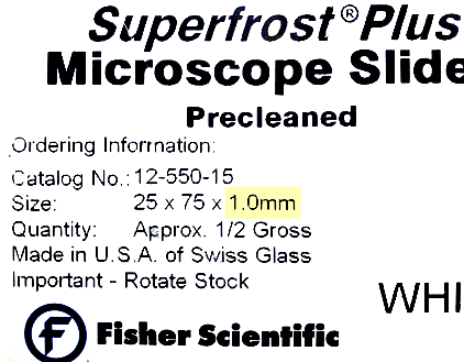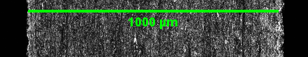 Side of glass slide imaged by reflectance with 10X N.A. 0.3 Plan-Neofluar objective. Spatial scale from metadata read into ImageJ using Loci plugins.