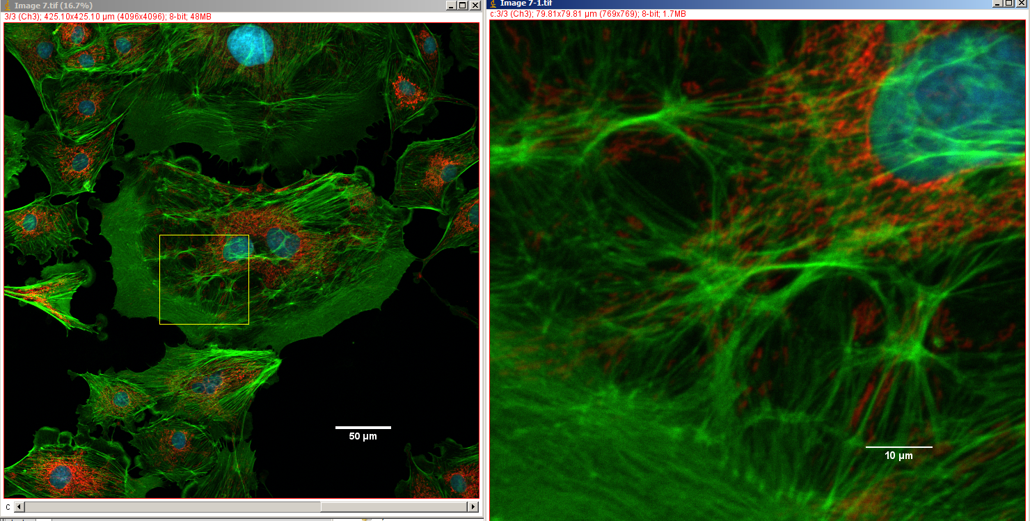 Left: Full field collected at zoom of 1, raw data scaled 16% to fit into window.