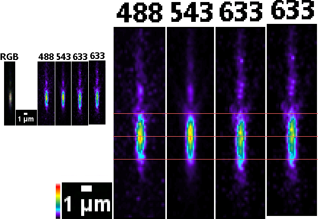 At the far right, the 633 image is shifted 0.5 um up relative to the others.