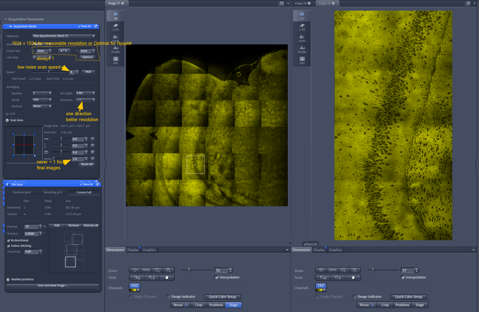 Notes on tiling software installed June 2019 of Zeiss 710 and 880 confocals using Zen Black 2012.