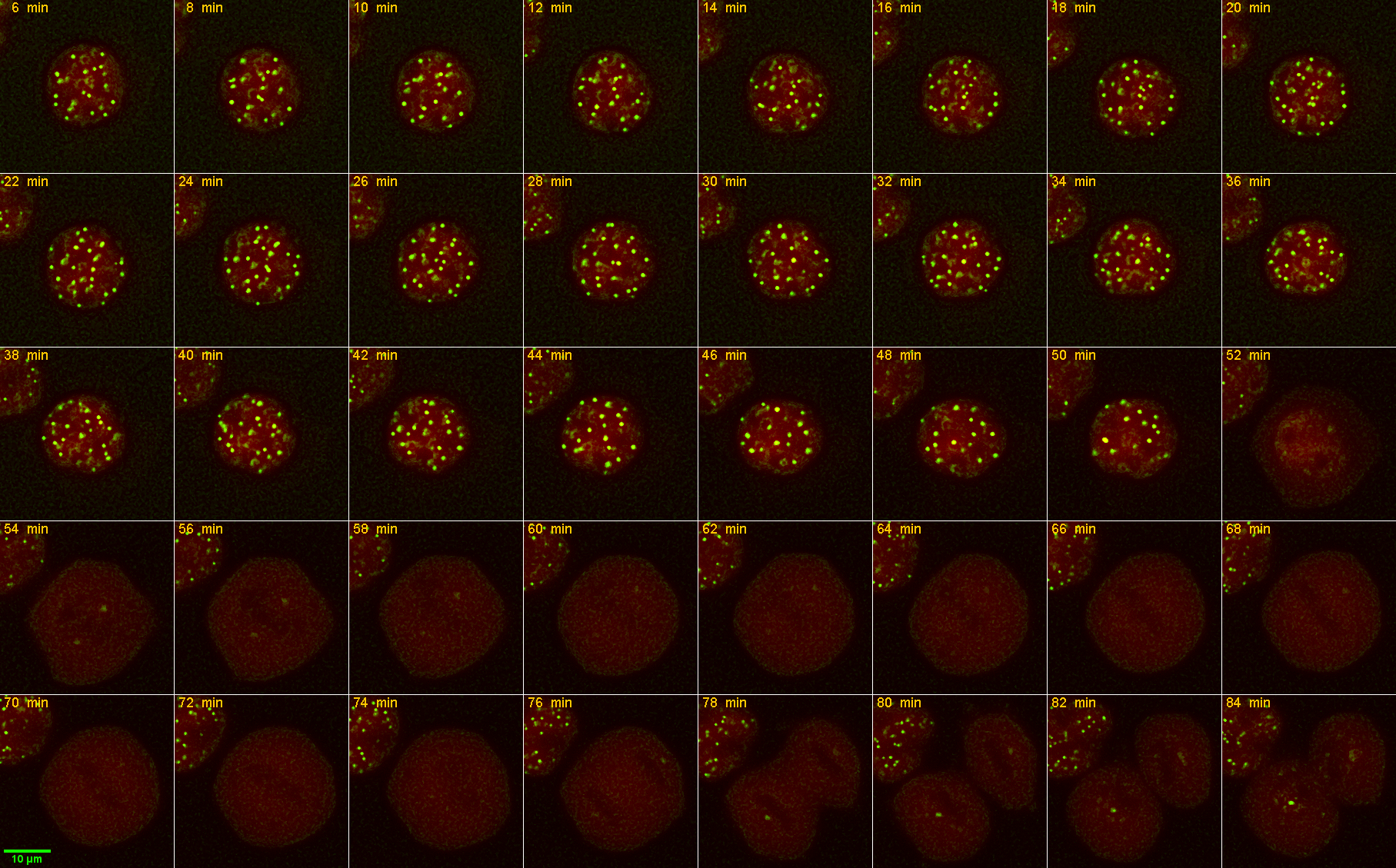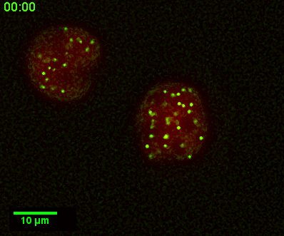 This is a single timepoint Z seires from two other cells. The point is to show thatthe puncta are distributed throughout the volume at different planes.