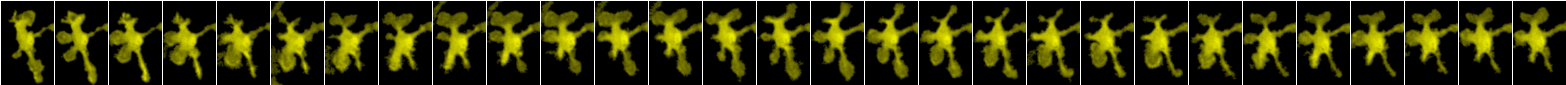 Fluorescent timelapse Z series and phase contrast image. One small area of one field shown. Experiment was able to image 9 large fields with Z series per minute at high spatial resolution. Experiments may be run overnight. |