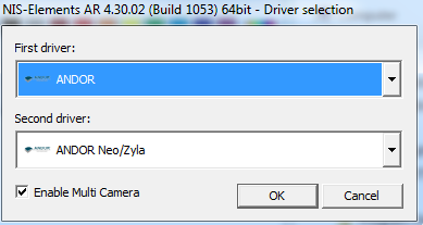 - Most people will choose one camera. "Andor Neo/Zyla" is the most common camera for standard imaging. "ANDOR" is for low light or most TIRF.