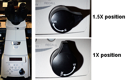 - If using a red probe (i.e. Alexa 568 or RFP, check filter labelled "550" set correctly in illumination source.