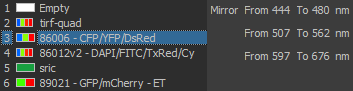 - The TIRF buttons are for ther fastest TIRF imaging but allow for spillover of channels and may have higher background due to illumination leaking through.