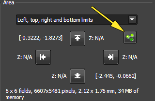 These points are propagated to the Acquire > Scan Large Image menu by clicking on the green points icon (left) and clicking the checkbox to use the focus points (right).