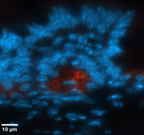 Example Images. Click on images for larger versions. All the micrographs in this figure were taken with the AxioObserver: https://www.ncbi.nlm.nih.gov/pmc/articles/PMC9720609/figure/F3/ Example fluorescence imaged with 40X NA 1.3 lens. For full resolution, click on image. Example H&E at highest magnification. Micrographs often not crisp because tissue sections are thicker than the depth of field of the lens. Example of crossed polarization showing collagen,click on image for web page with explanation.