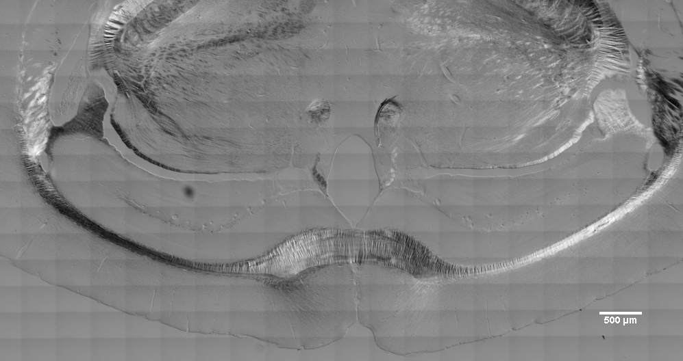 Another example of polarized light. The 20X air lens was used with DICII optics in the lightpath. Tiling was done with 1x1 binning and the images drastically rescaled to show here.