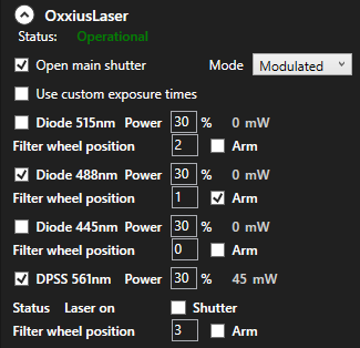 In the software, you need to enter the filter numbers to match the lasers and set the laser powers.