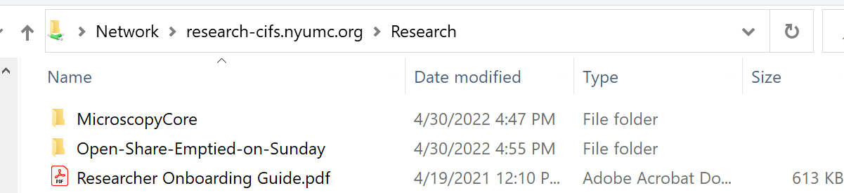 If you do not see the connection to research server with Open Share and the labs spaces you have access to, you need to contact IT to fix this. You can do this by contacting your local IT expert or filing a ticket online.