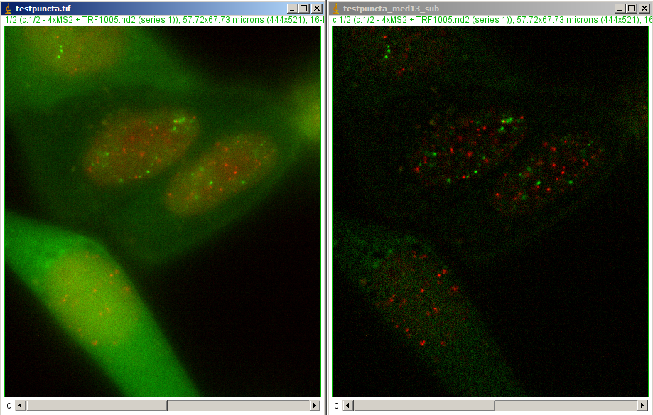 The point of this webpage is to show a quick local contrast enhancement method to pull out spatial details. Really only valid when know objects of interest are puncta.