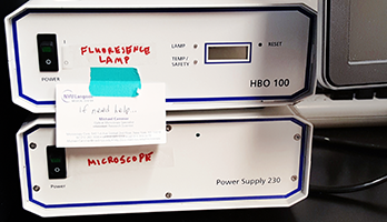 - If using fluorescence, lamp power supply labeled "HBO 100"