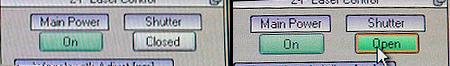 Then go back to the Laser tab on the far left. Use the Hard Shutter to open the shutter between the Pockels cell(s) and the objective lens and also use Live Scan.