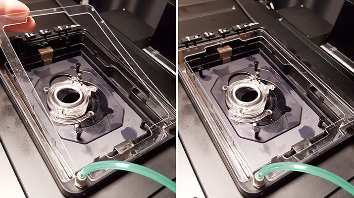 Hours before moving samples to the scope room, put freezer packs for shipping or metal block in water bath or incubator to make it the same temperature as the samples.