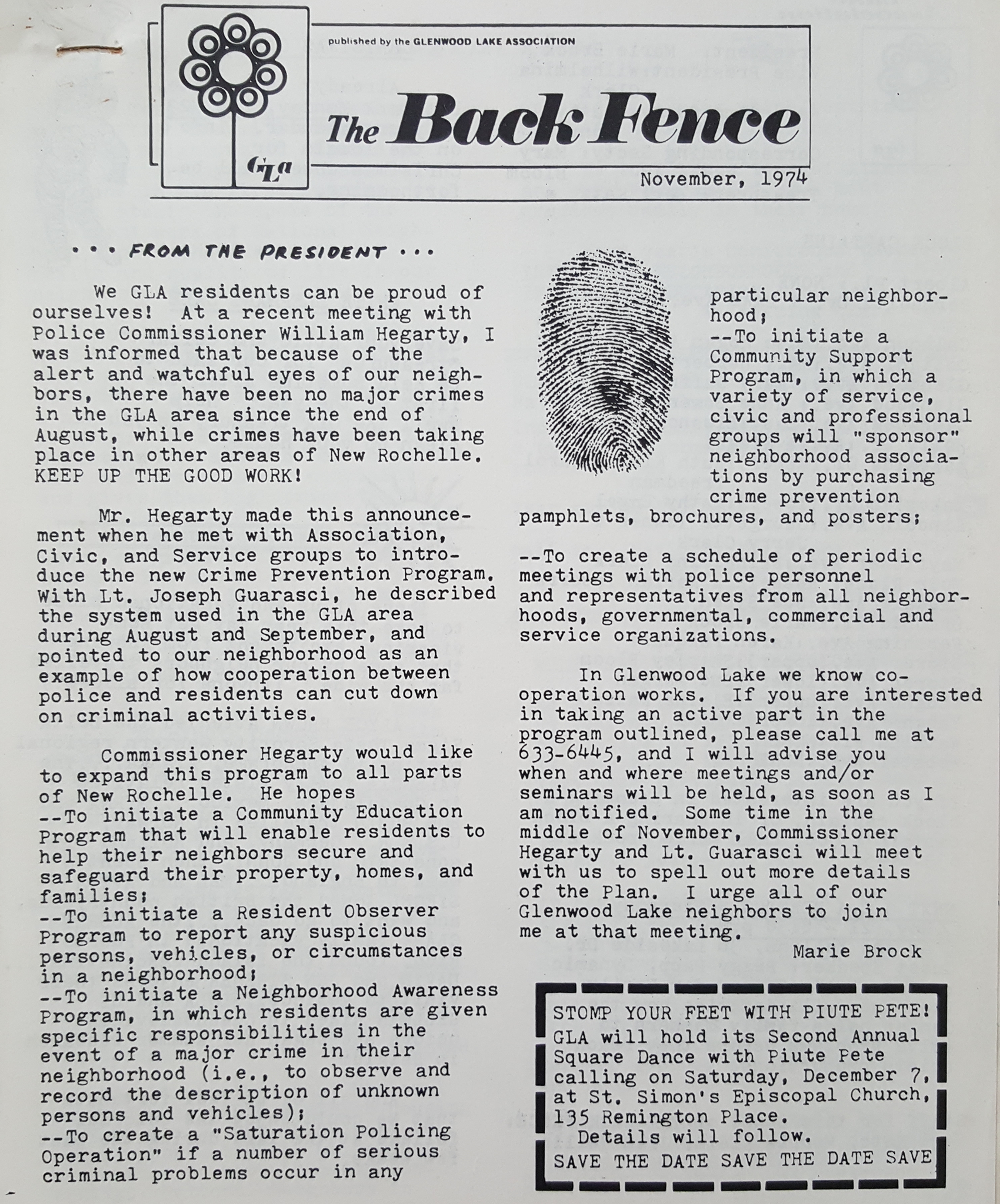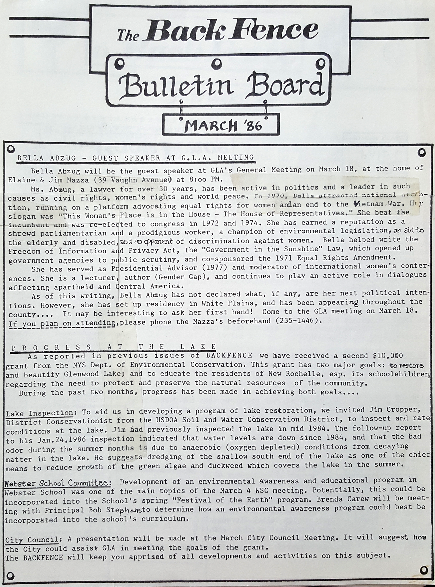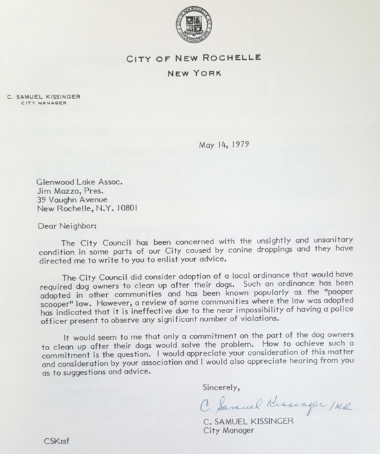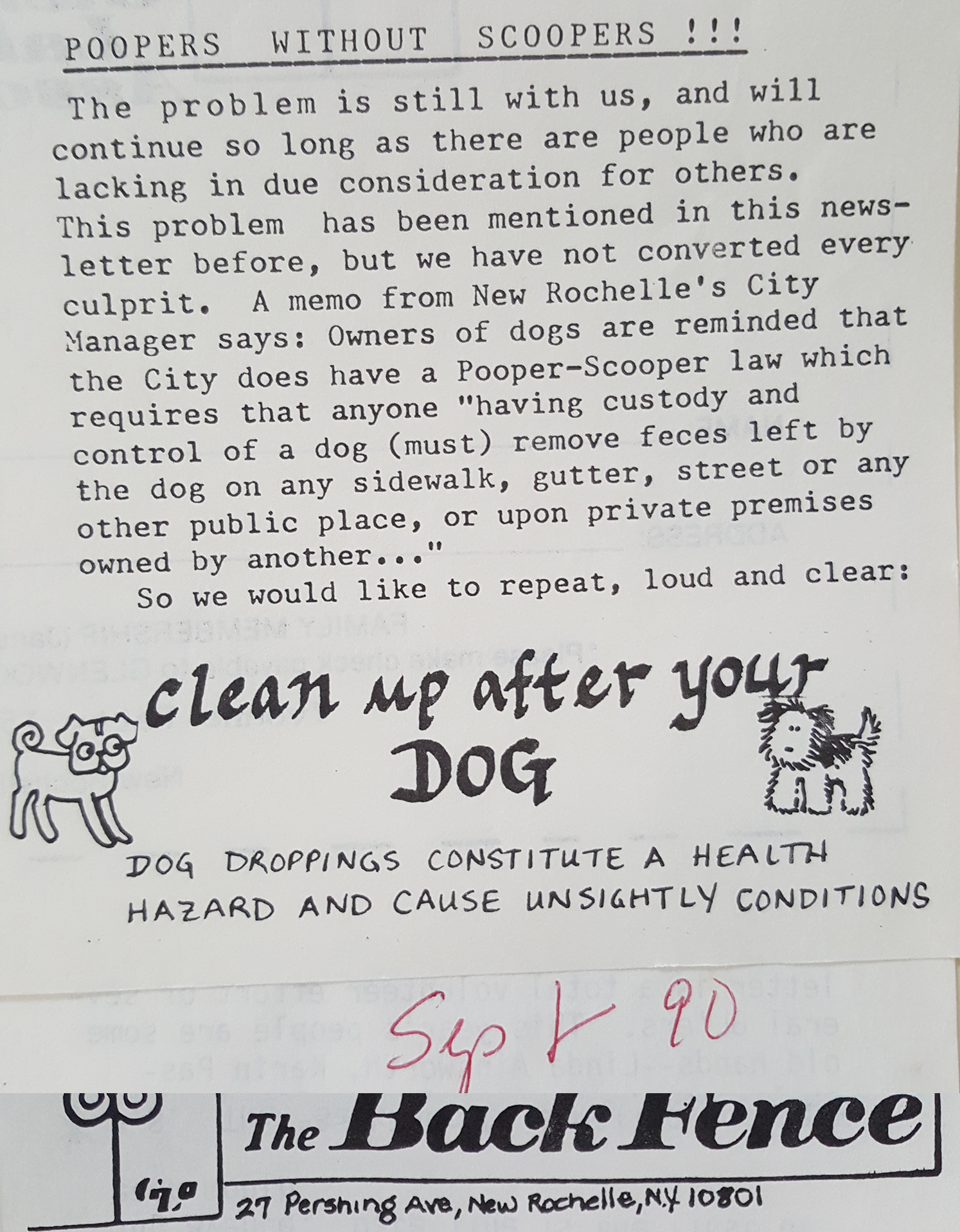 GLA at the forefront of pooper-scooper legislation. Actually, the letter implies there may have been resistance to it; in this activist community, probably seen as an assault on freedom. A later request in 1990 Backfence for adherence to the law and courtesy,